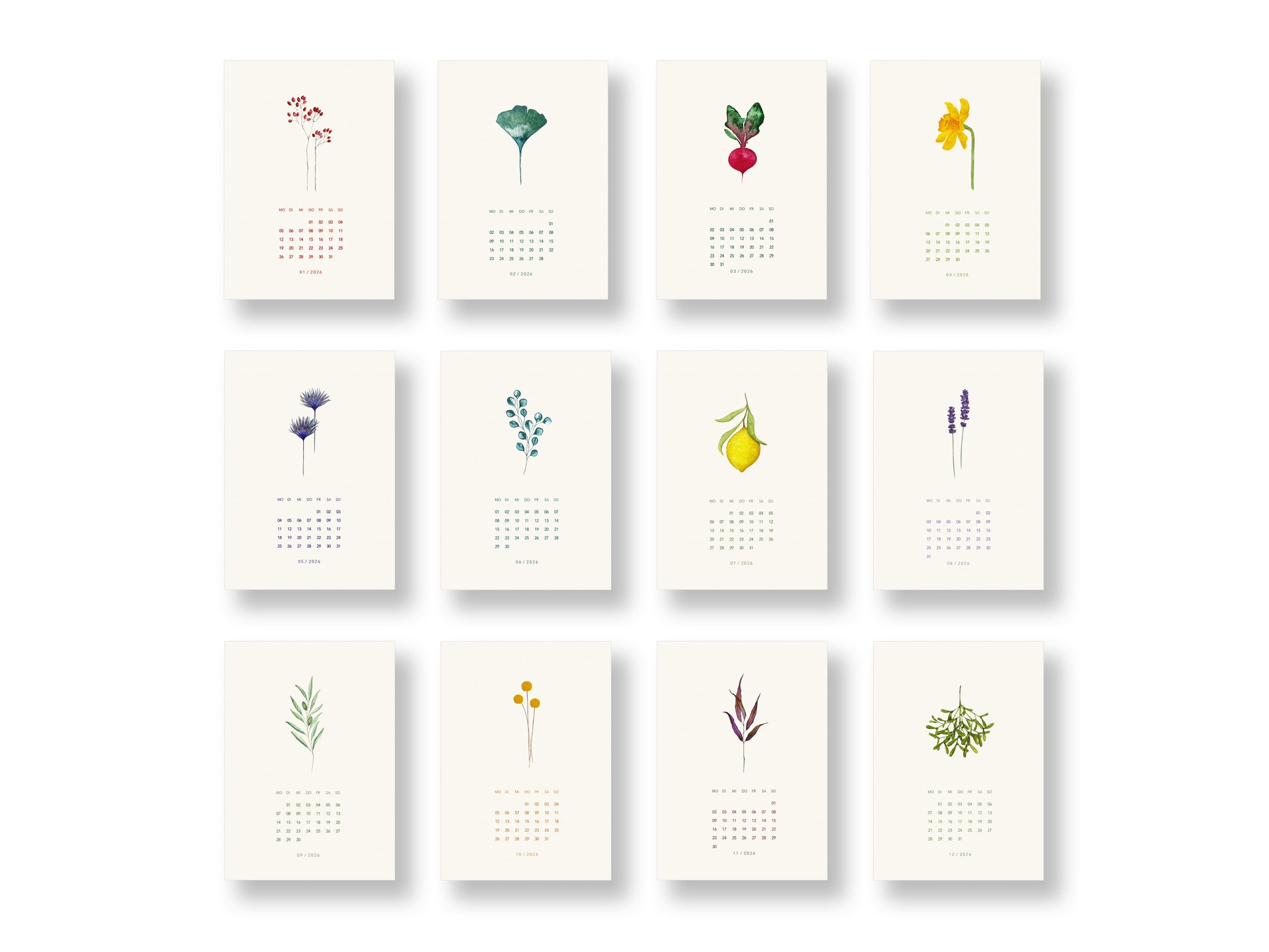 Dieser Pflanzenkalender zeichnet sich durch 12 handgemalte Aquarelle aus. Die hochwertigen Kunstdrucke sind auf Naturpapier, in kleiner Auflage gedruckt, wodurch dieser Kalender etwas ganz besonderes ist. Dieser Kalender wurde von von SANS.design aquarelliert und gestaltet